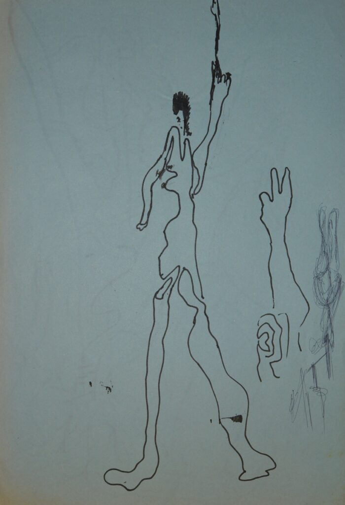 Σχέδιο με μελάνι σε γαλάζιο χαρτί