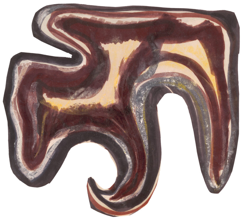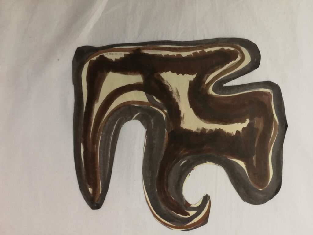 Μικτή τεχνική (μελάνι και παστέλ) σε χαρτί κομμένο στο σχήμα της σύνθεσης