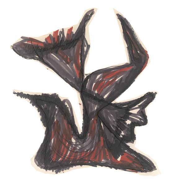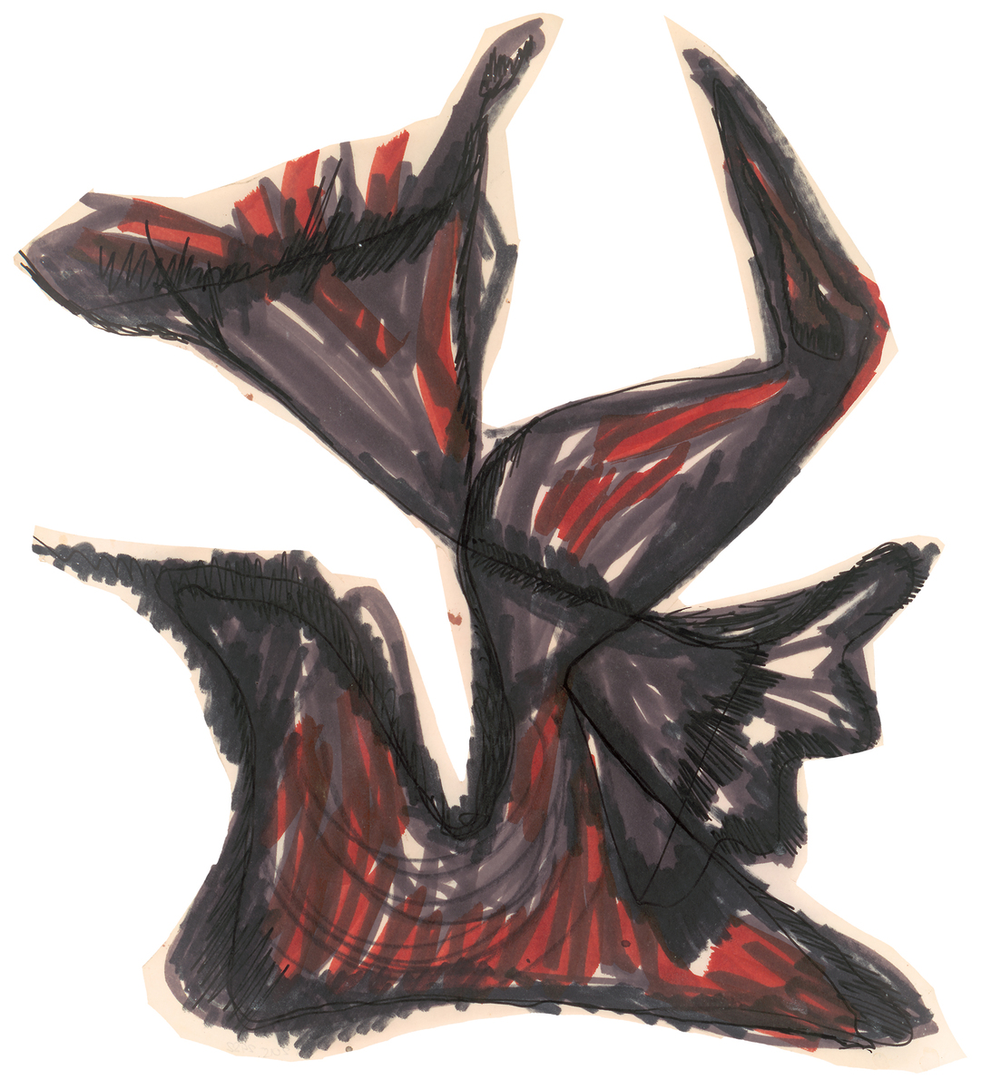 Μικτή τεχνική (μελάνι και παστέλ) σε χαρτί κομμένο στο σχήμα της σύνθεσης