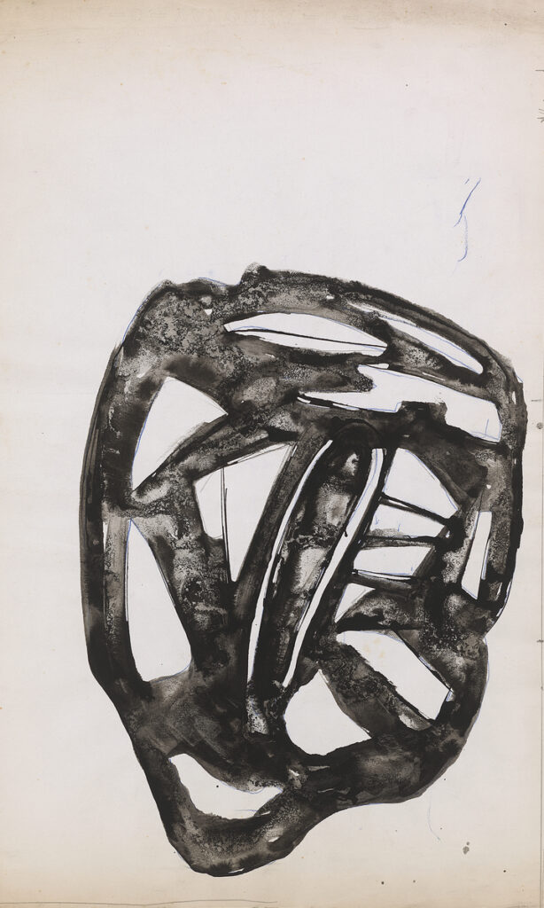 Μελάνι και μπλε ξυλομπογιά σε χαρτί
