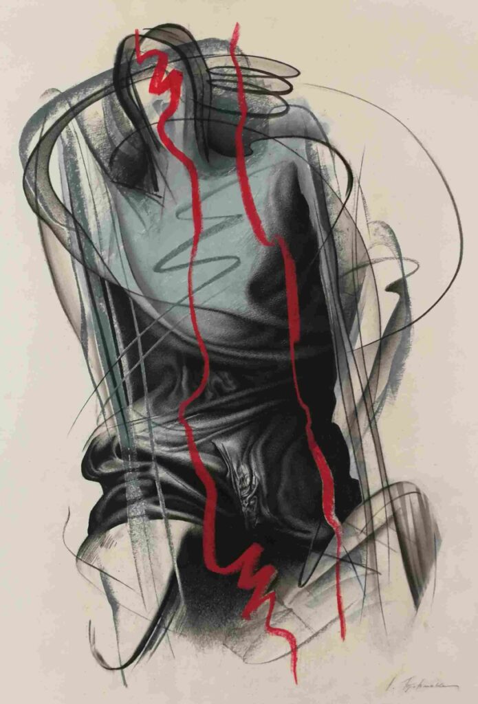 Κάρβουνο και παστέλ σε χαρτί επικολλημένο σε χαρτόνι