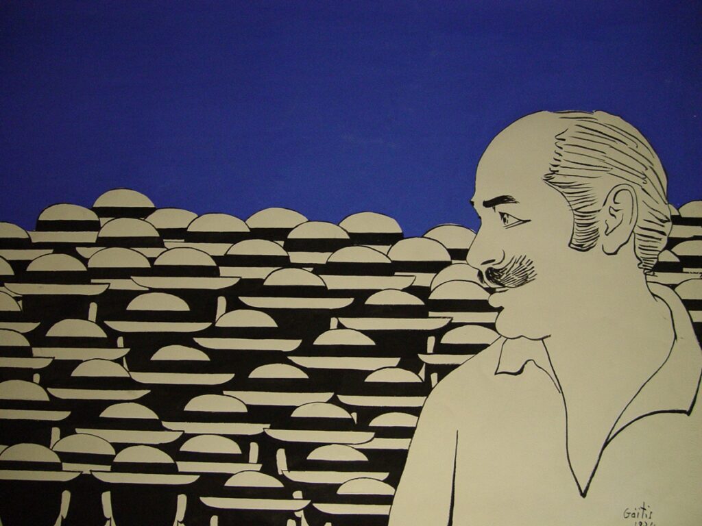 Κώστας Ανδρέου (1917 - 2007) ; Δημήτρης Α. Φατούρος (1928 - 2020) ; Ιωάννα Σπητέρη-Βεροπούλου (1920 - 2000) ; Eugène Delacroix (1798 - 1863) ; Γιώργος Τούγιας (1922 - 1994) ; Γαβριέλλα Σίμωσι (1926 - 1999) ; Κώστας Τσόκλης (1930) ; Γεράσιμος Σκλάβος (1927 - 1967) ; Άγγελος Αγγελόπουλος (1904 - 1995) ; Αλέκος Κοντόπουλος (1904 - 1975) ; Άλεξ Μυλωνά (1923 - 2016) ; Ντίκος Βυζάντιος (1924 - 2007) ; Berto Lardera ; Κώστας Βαλσάμης (1908 - 2003) ; Γιάννης Γαΐτης (1923 - 1984) ; Λε Κορμπιζιέ (1887 - 1965) ; Georges Mathieu (1921 - 2012) ; Θόδωρος (Παπαδημητρίου) (1931 - 2018) ; Τάκις (Βασιλάκης Παναγιώτης) (1925 - 2019) ; Victor Vasarely ; Φιλόλαος (Τλούπας) (1923 - 2010) ; Νίκος Κεσσανλής (1930 - 2004) ; Τίτα Κριεζή (1930 - 2021) ; Αγλαΐα Λυμπεράκη (1923 - 1985) ; Γιάννης Μαλτέζος (1915 - 1987) ; Ιάσων Μολφέσης (1925 - 2009) ; Κώστας Πανιάρας (1934 - 2014) ; Κώστας Καρράς (1936 - 2012) ; Γιώργος Βαφειάδης