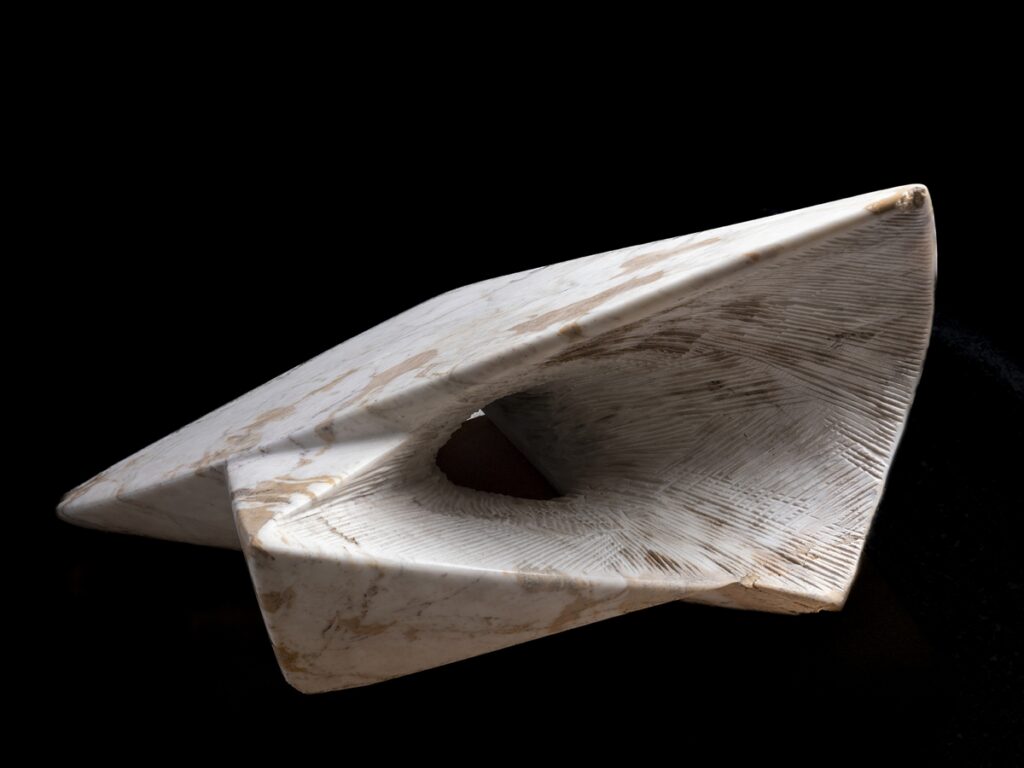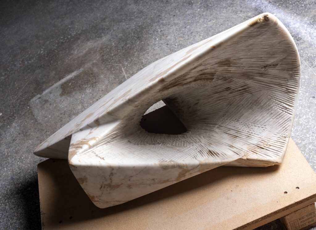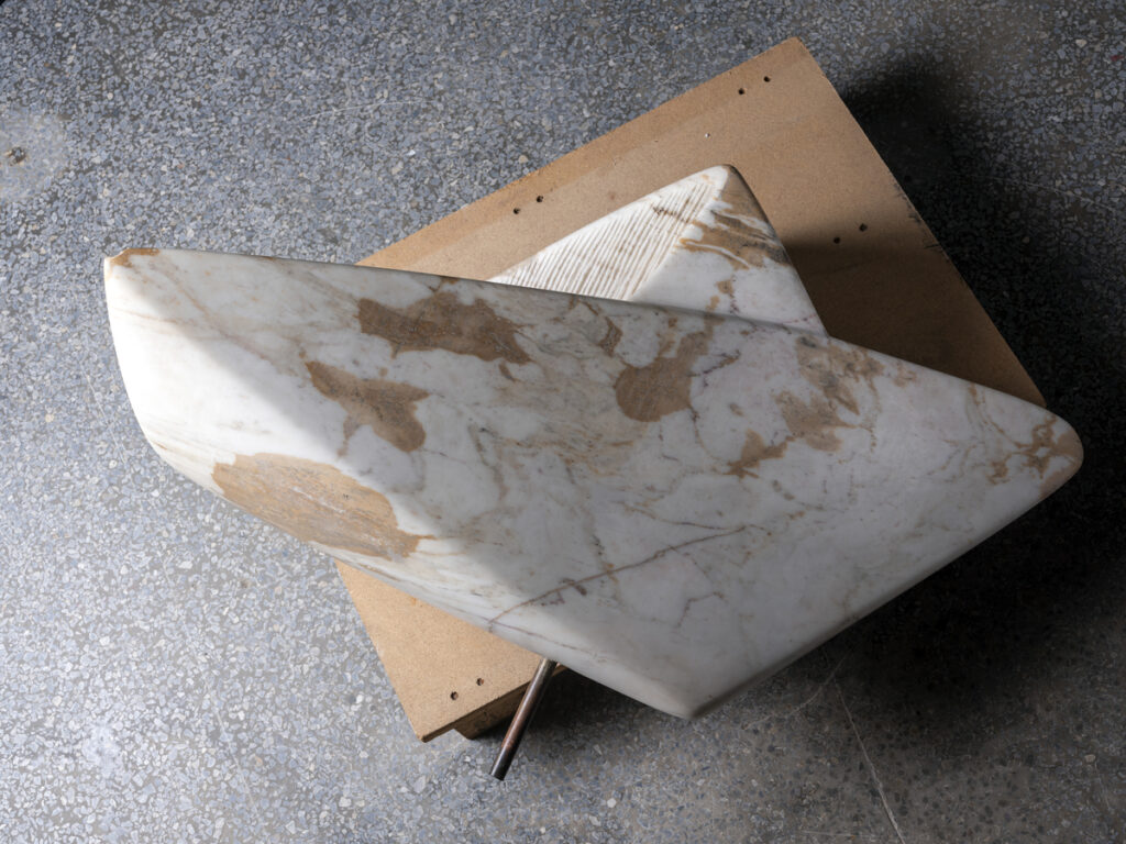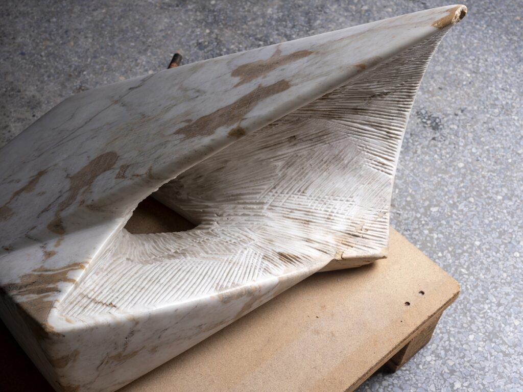 Λάξευση σε μάρμαρο λευκό με γαιώδεις ραβδώσεις