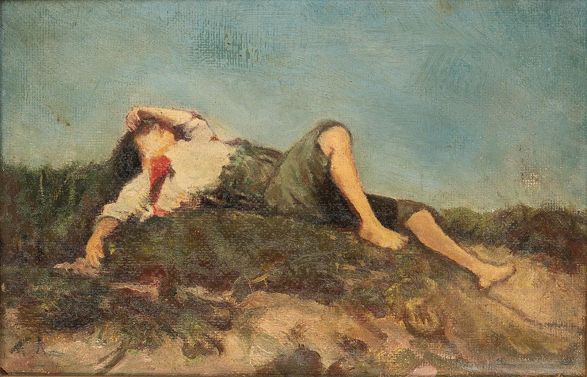 Το έργο είναι σπουδή του Λεμπέση που αντιγράφει το έργο του Franz von Lenbach, Βοσκόπουλο ξαπλωμένο σε θερινό λιβάδι (Hirtenknabe auf einer Sommerwiese liegend), 1860, Μόναχο, Sammlung Schack, ίσως στο πλαίσιο μαθητείας του ζωγράφου στην Ακαδημία του Μονάχου.