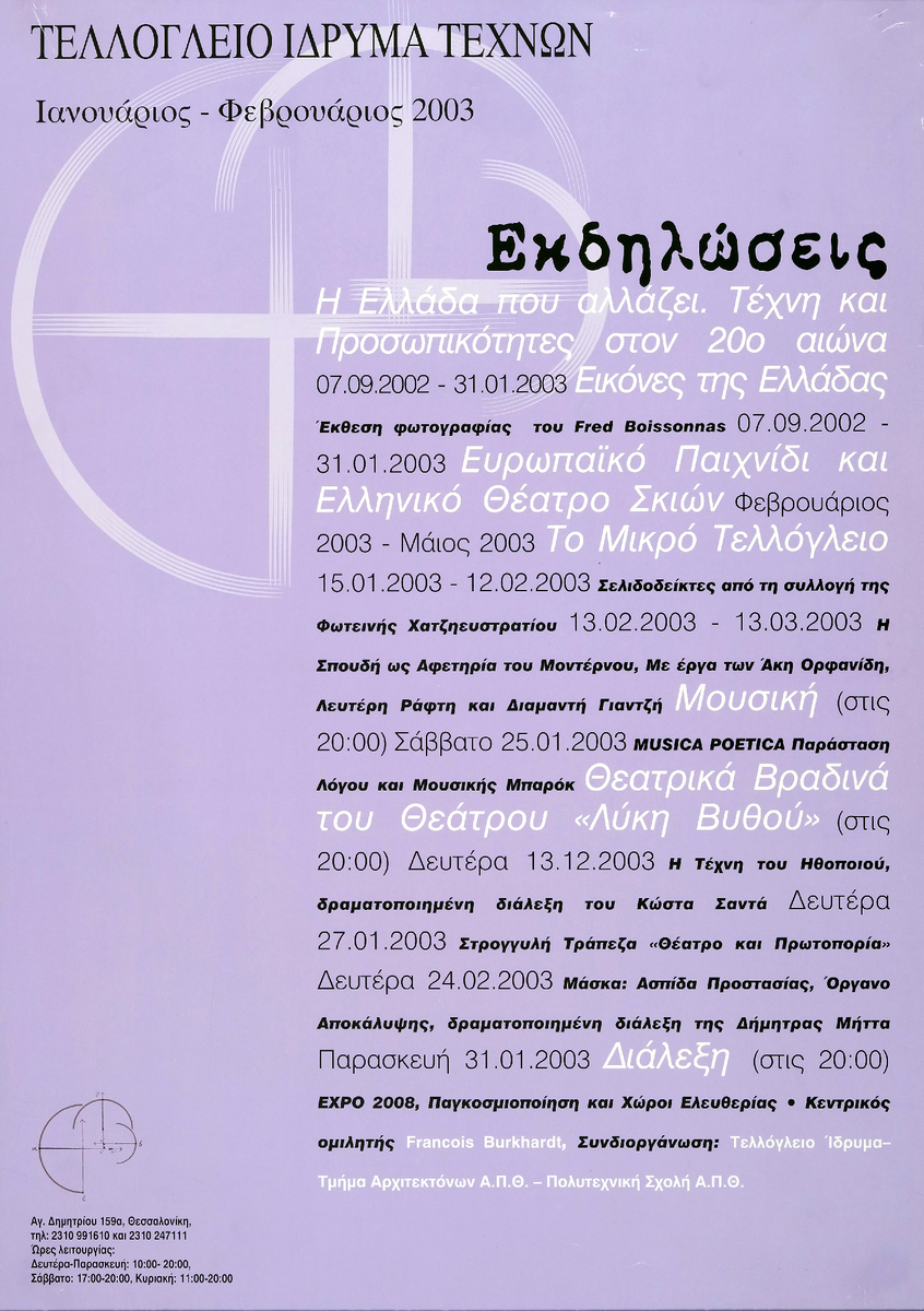 Πρόγραμμα εκθέσεων και εκδηλώσεων του Τελλογλείου Ιδρύματος (Χειμώνας 2003)