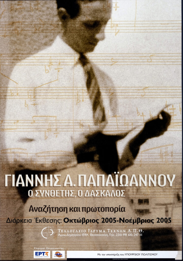 Αφίσα έκθεσης αφιερωμένης στον συνθέτη Γιάννη Α. Παπαϊωάννου στο Τελλόγλειο Ίδρυμα στη Θεσσαλονίκη.
