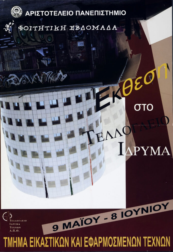 Αφίσα έκθεσης έργων των φοιτητών του Τμήματος Εικαστικών και Εφαρμοσμένων Τεχνών του Αριστοτελείου Πανεπιστημίου Θεσσαλονίκης, που παρουσιάστηκε στο Τελλόγλειο Ίδρυμα στη Θεσσαλονίκη στο πλαίσιο των εκδηλώσεων της «Φοιτητικής Εβδομάδας».