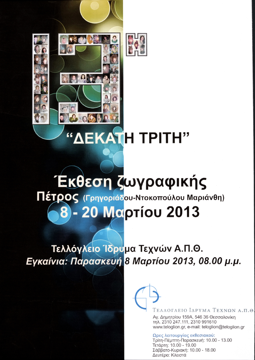 Αφίσα ατομικής έκθεσης ζωγραφικής της Μαριάνθης Γρηγοριάδου-Ντοκοπούλου με προσωπογραφίες γυναικών της Βουλής, που πραγματοποιήθηκε στο Τελλόγλειο Ίδρυμα στη Θεσσαλονίκη.