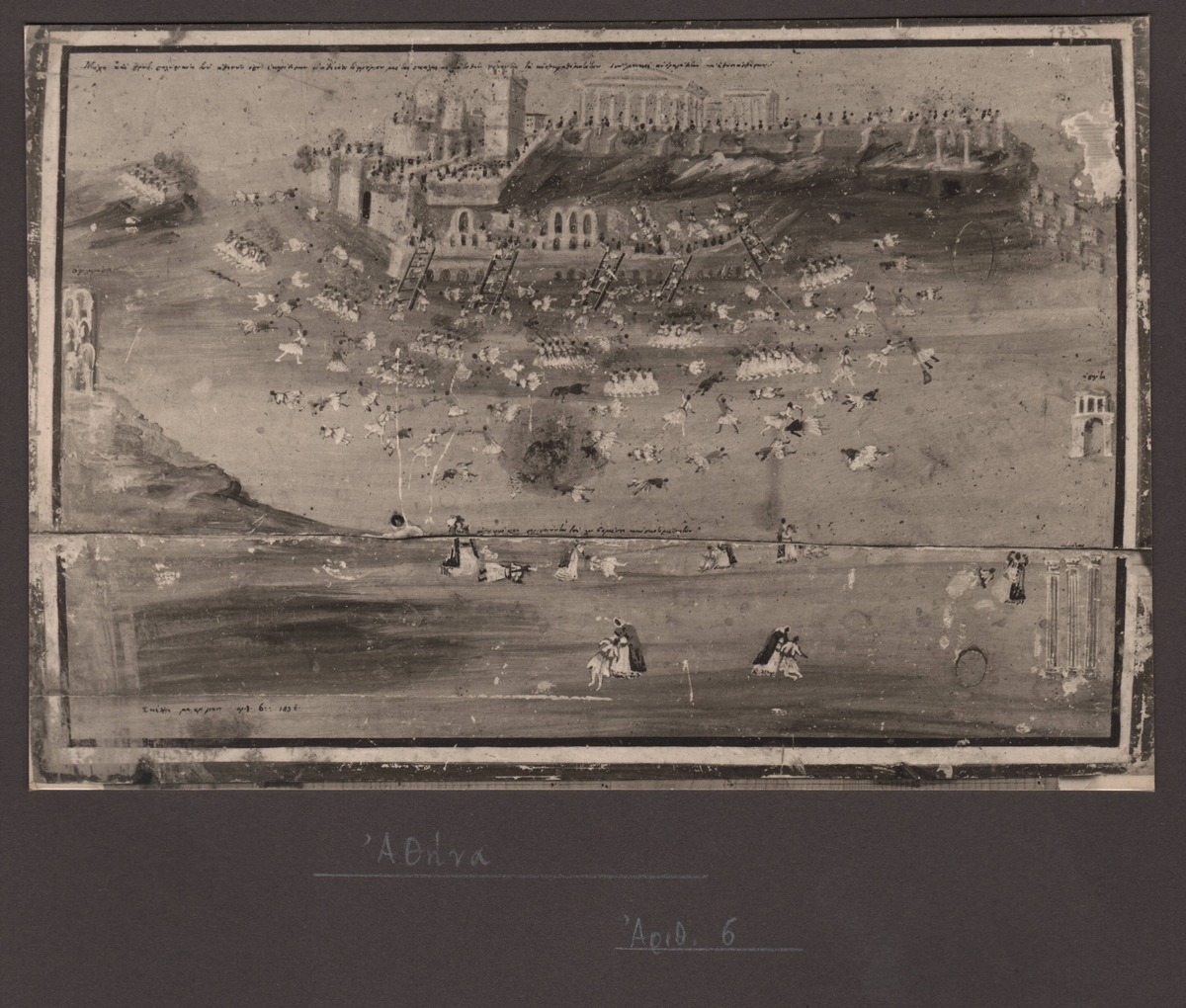 Ασπρόμαυρη φωτογραφία έργου του λαϊκού καλλιτέχνη Παναγιώτη Ζωγράφου τοποθετημένη σε χαρτόνι.