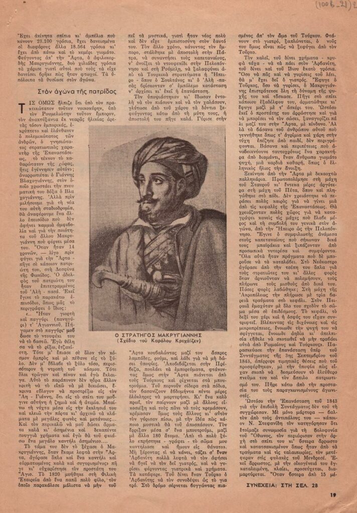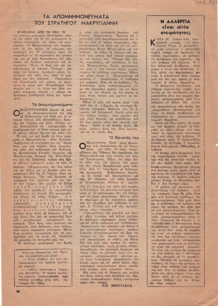 Απόκομμα του περιοδικού “Επιστήμη & Ζωή”, όπου δημοσιεύεται άρθρο με θέμα τα Απομνημονεύματα του στρατηγού Μακρυγιάννη. Δίνονται αποσπάσματα και τονίζεται η αξία τους.