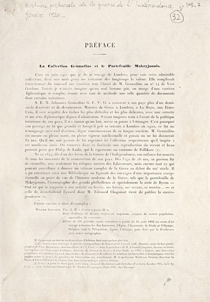 Préface. La Collection Gennadius et le Portfeuille Makryjannis