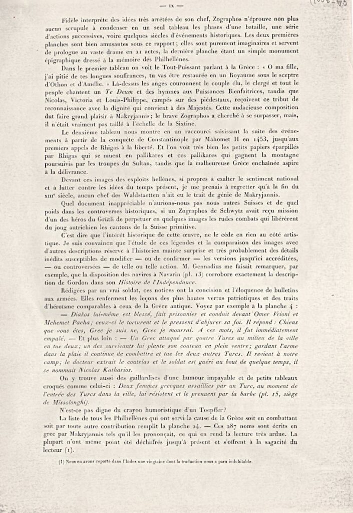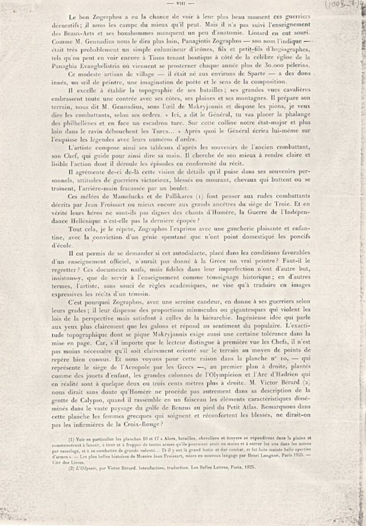 Πρόκειται για τον πρόλογο έκδοσης τόμου, γραμμένο από τον Fr. Boissonnas, ο οποίος περιέχει αντίγραφα έργων του Παναγιώτη Ζωγράφου για την Ελληνική Επανάσταση, τα οποία φιλοτέχνησε από τις διηγήσεις του στρατηγού Μακρυγιάννη.