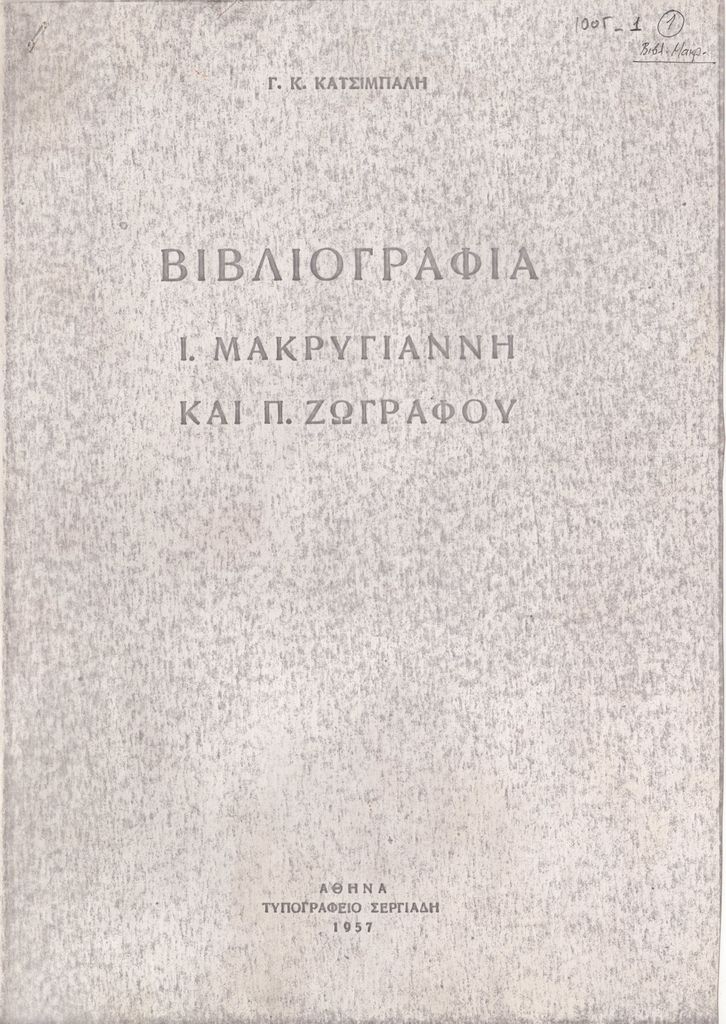 Βιβλιογραφία Ι. Μακρυγιάννη και Π. Ζωγράφου
