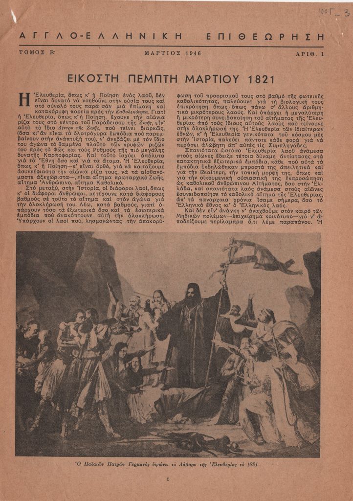 Απόκομμα, χαρτί, 3 φφ, 28×20 εκ., στα ελληνικά, δημοσίευσης άρθρου αναφερόμενου στη συνεργασία του Μακρυγιάννη με τον Παναγιώτη Ζωγράφο. Δίνονται πληροφορίες για τα έργα που φιλοτέχνησε ο δεύτερος με θέμα την Ελληνική Επανάσταση ύστερα από καθοδήγηση του στρατηγού. Δίνονται σχετικές πληροφορίες για τους δύο και για τη σύμπραξή τους.