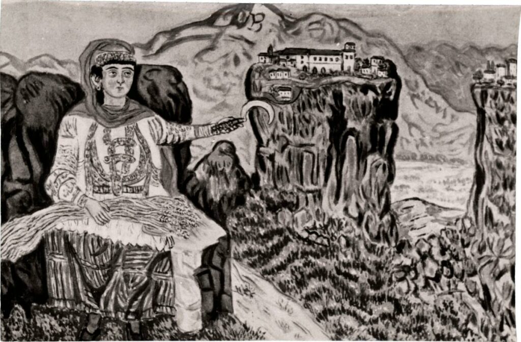 Ασπρόμαυρη εκτυπωμένη φωτογραφία έργου του Θεόφιλου.