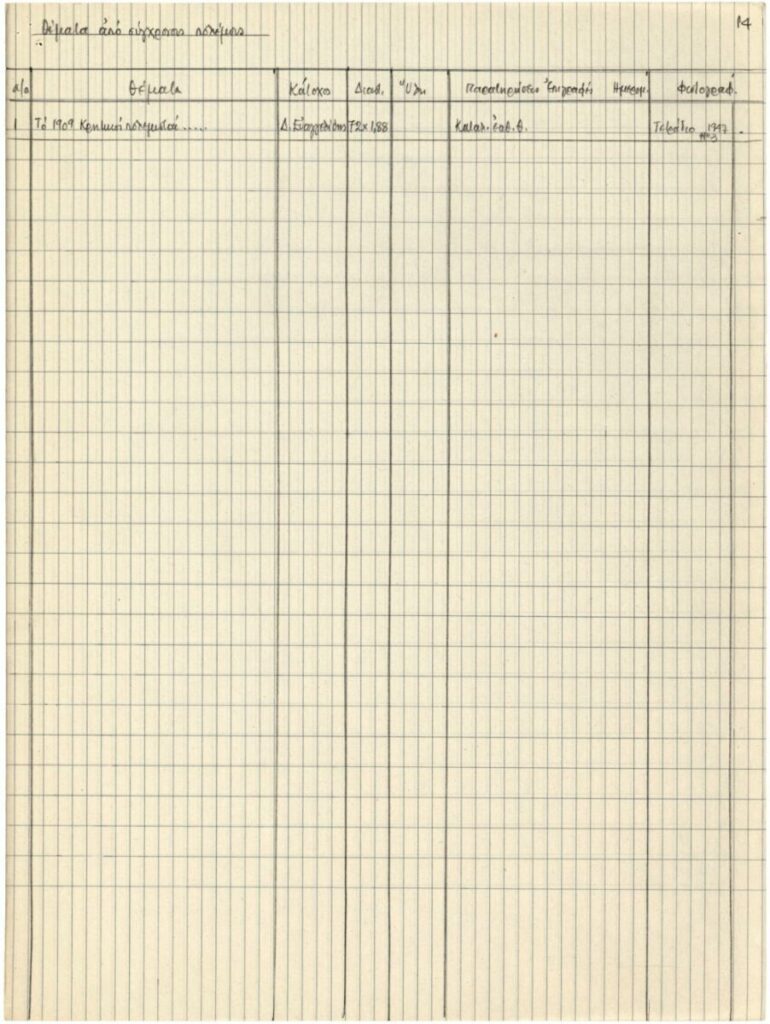 Χειρόγραφη εργογραφία για τον Θεόφιλο (Χατζημιχαήλ), χαρτί, 29×21 εκ., στα ελληνικά.