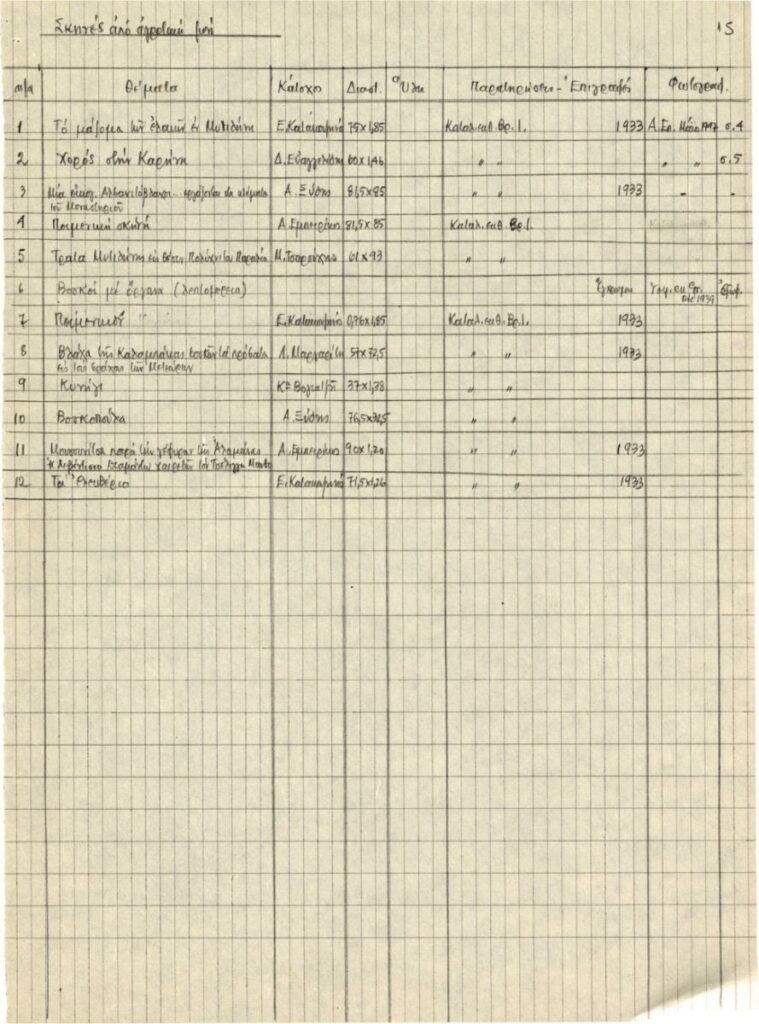 Χειρόγραφη εργογραφία για τον Θεόφιλο (Χατζημιχαήλ), χαρτί, 29×21 εκ., στα ελληνικά.