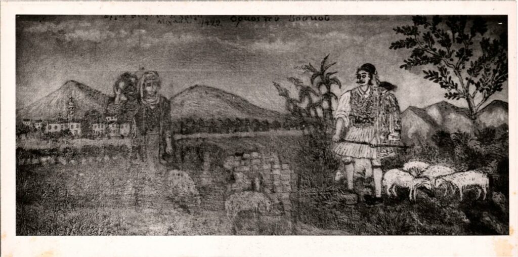 Φωτογραφία, α/μ, φωτογραφικό χαρτί, 9×18 εκ., έργου του Θεόφιλου (Χατζημιχαήλ).