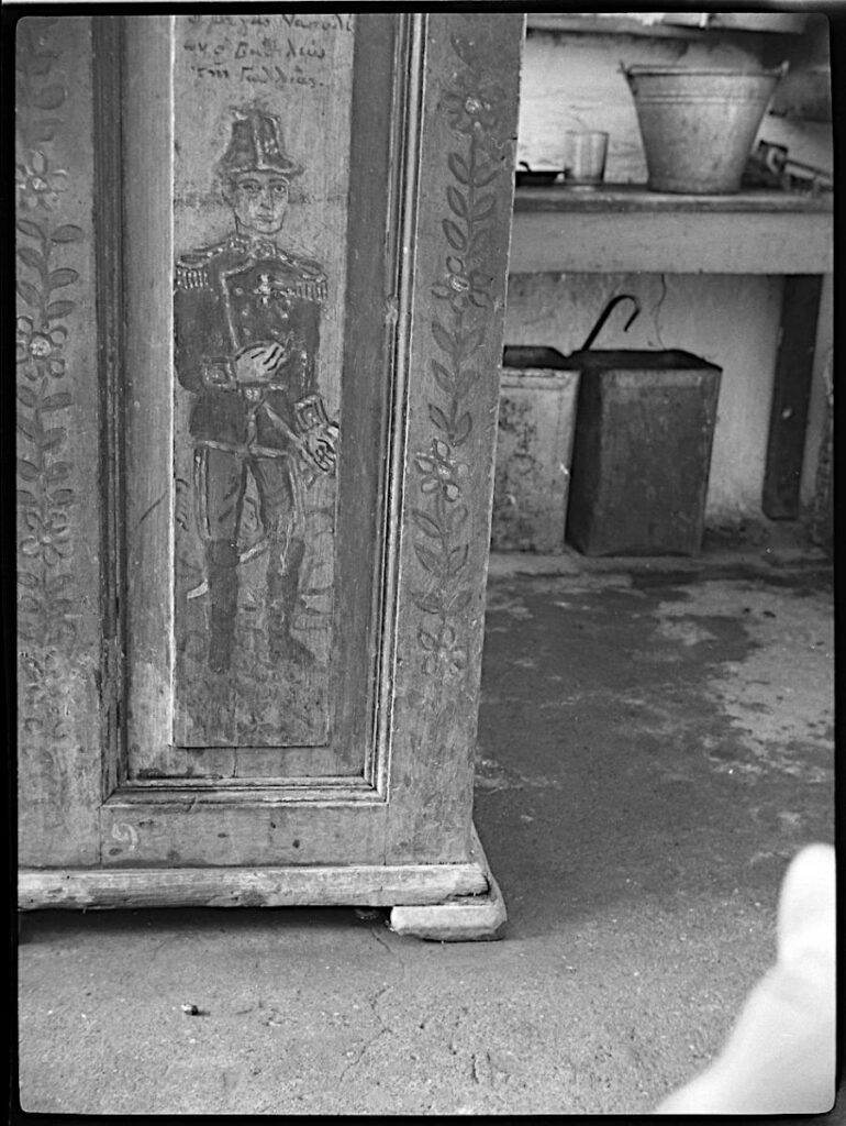 Αρνητικό φωτογραφίας, α/μ, 6×4.5 εκ., έργου του Θεόφιλου (Χατζημιχαήλ) σε καφενείο στο χωριό Αγία Παρασκευή Λέσβου.