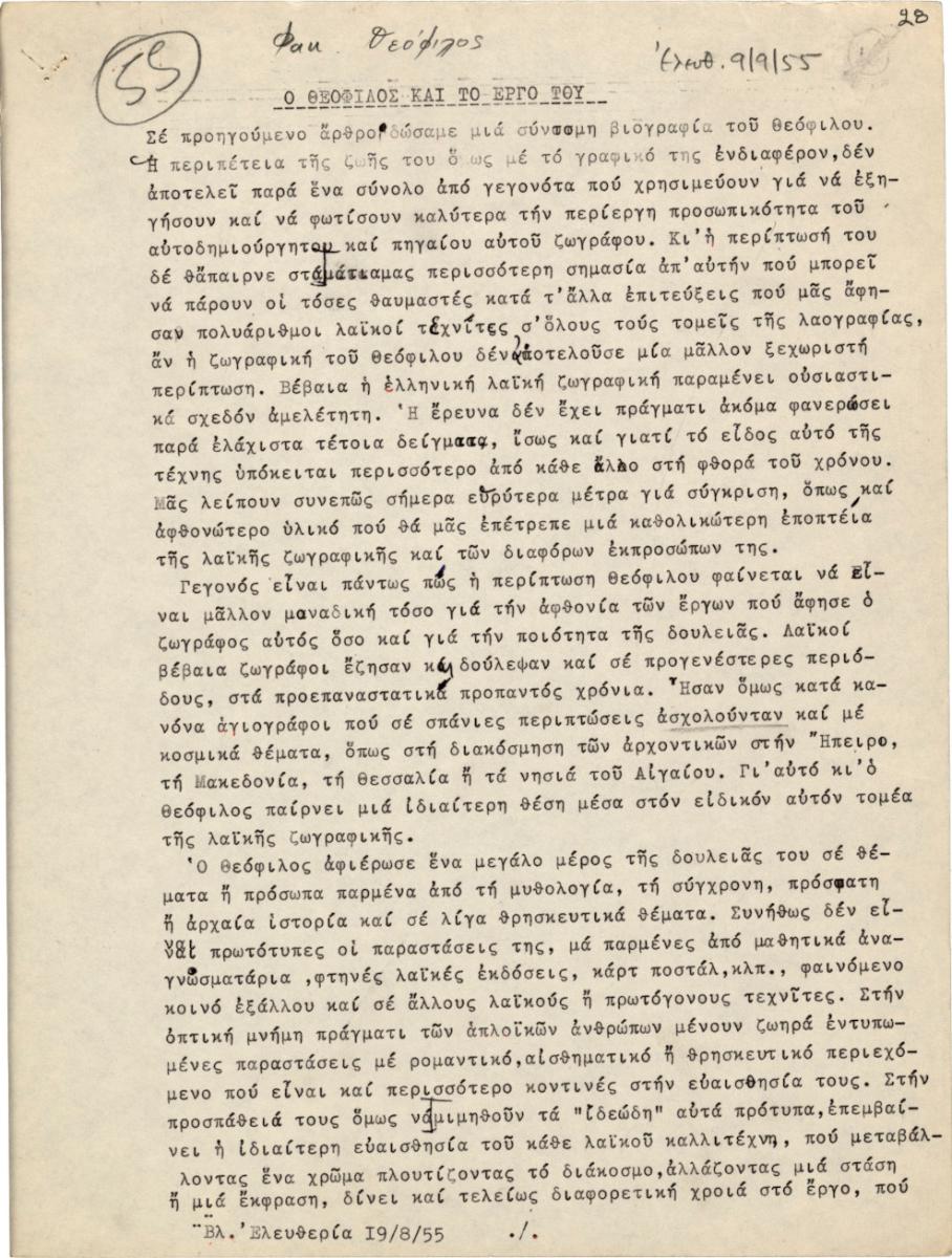 Αποτελεί προσχέδιο δημοσίευσής του στην εφημερίδα Ελευθερία.