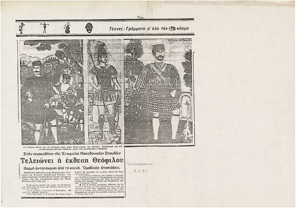 Φωτοαντίγραφο, χαρτί, 30×42 εκ., στα ελληνικά, δημοσίευσης άρθρου αναφερόμενου στη λήξη έκθεσης του Θεόφιλου (Χατζημιχαήλ), η οποία διεξάγεται στη Θεσσαλονίκη. Τονίζεται η ανταπόκριση του κοινού.