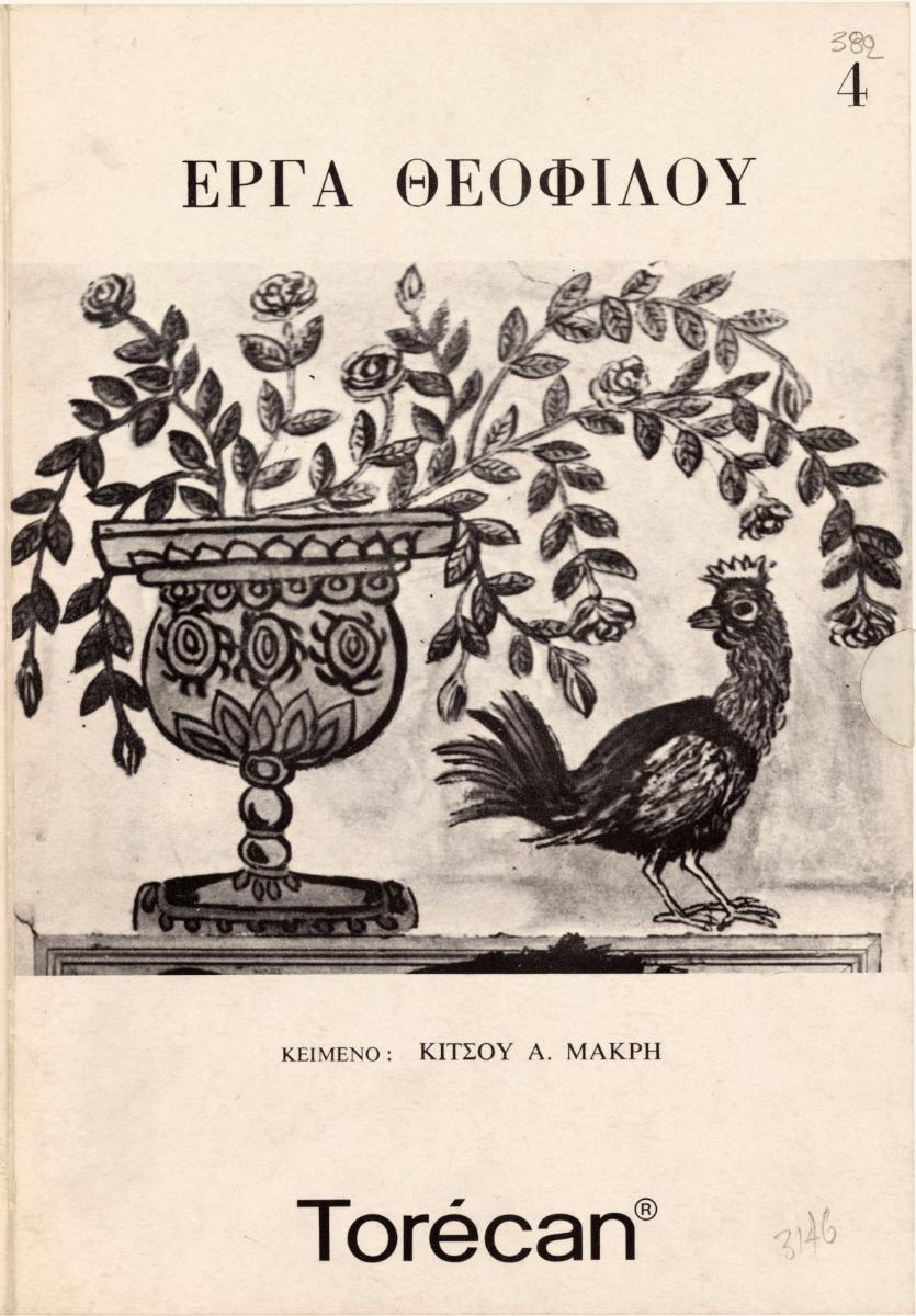Διαφημιστικό έντυπο με κείμενο του Κίτσου Μακρή για τη ζωγραφική του Θεόφιλου (Χατζημιχαήλ).