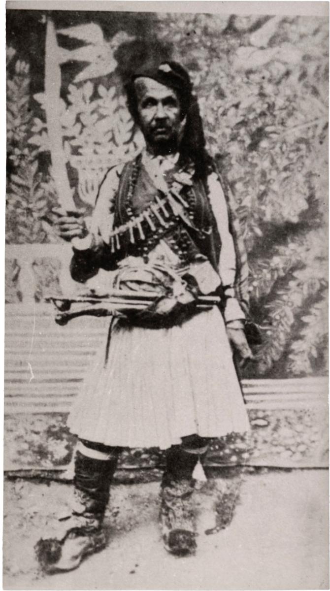 Φωτογραφία, α/μ, φωτογραφικό χαρτί, 17×9.5 εκ., του Θεόφιλου (Χατζημιχαήλ).