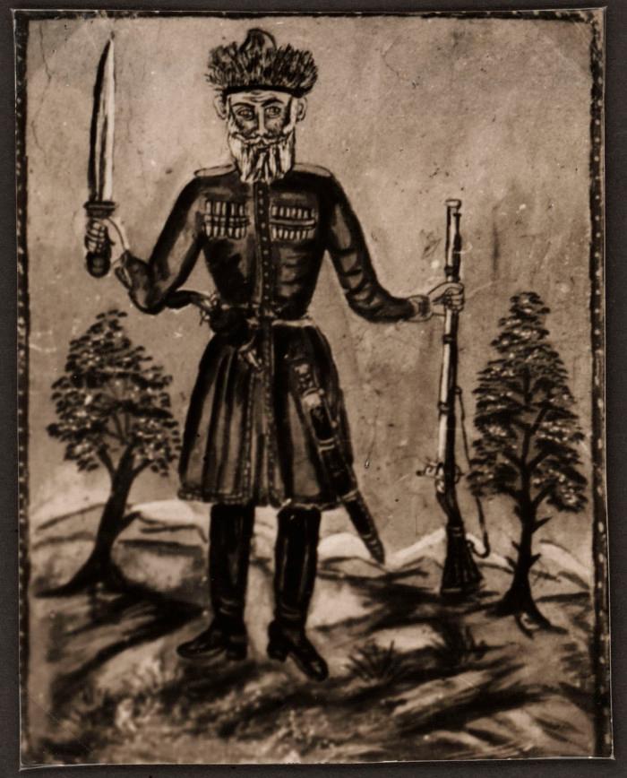 Φωτογραφία, α/μ, φωτογραφικό χαρτί, 9×7 εκ., τοποθετημένη σε χαρτόνι, έργου του Θεόφιλου (Χατζημιχαήλ).