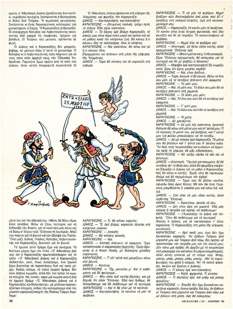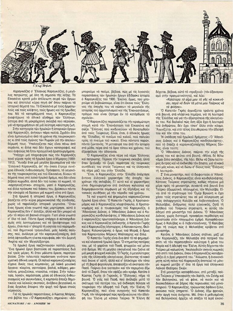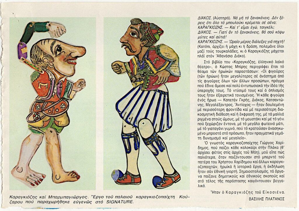 Απόκομμα του περιοδικού “Signature”, όπου δημοσιεύεται άρθρο με θέμα το Θέατρο Σκιών του Καραγκιόζη.