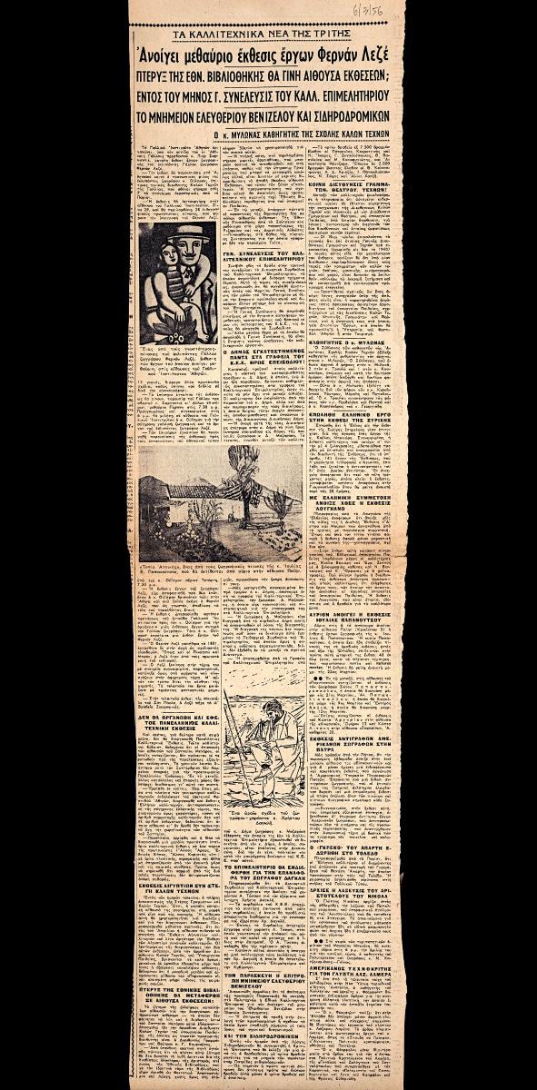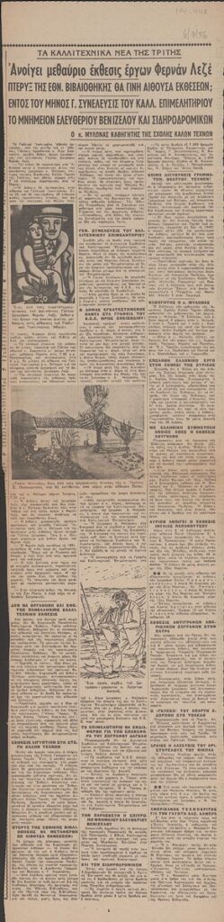 Απόκομμα της εφημερίδας “Τα Νέα” (06/03/1956), όπου δημοσιεύονται ειδήσεις από την καλλιτεχνική επικαιρότητα.