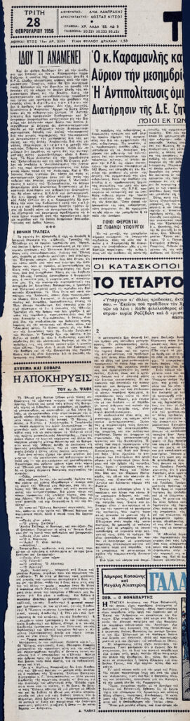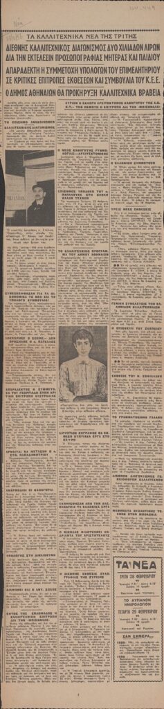 Απόκομμα της εφημερίδας “Τα Νέα” (28/02/1956), όπου δημοσιεύονται ειδήσεις από την καλλιτεχνική επικαιρότητα.