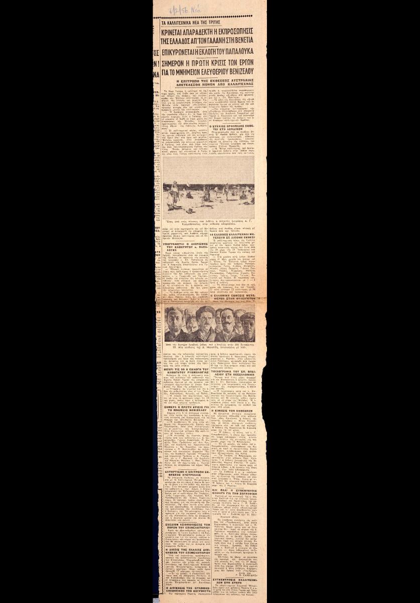 Τα καλλιτεχνικά νέα της Τρίτης : Κρίνεται απαράδεκτη η εκπροσώπησις απ’ τον Γαλάνη στη Βενετία