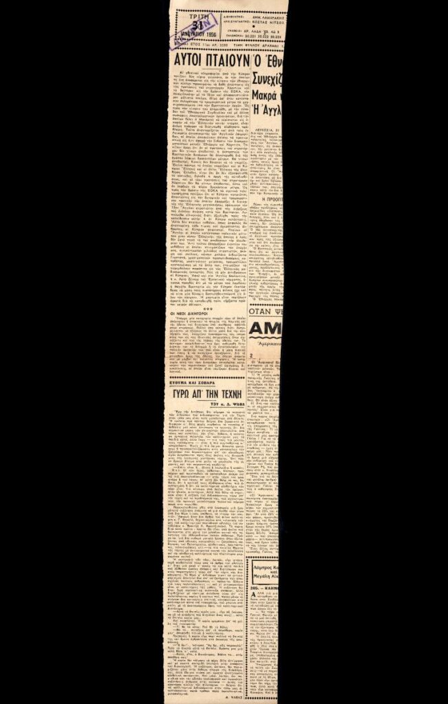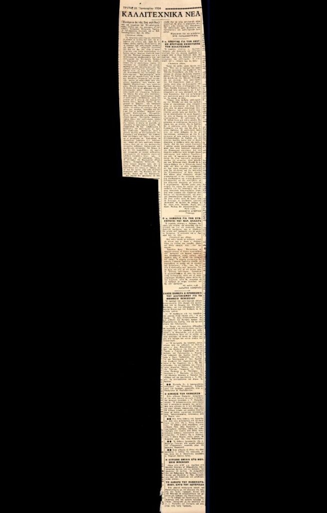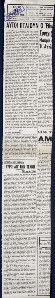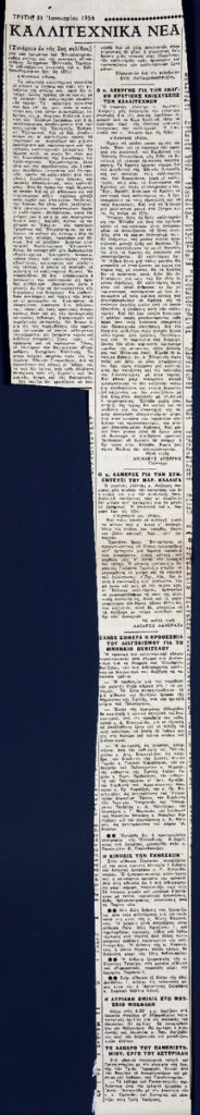 Απόκομμα της εφημερίδας “Τα Νέα” (31/01/1956), όπου δημοσιεύονται ειδήσεις από την καλλιτεχνική επικαιρότητα.