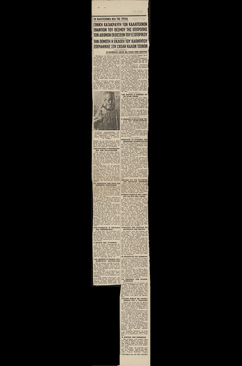 Τα καλλιτεχνικά νέα της Τρίτης : Γενική κατακραυγή των καλλιτεχνών εναντίον του θεσμού της επιτροπής των διεθνών εκθέσεων του εξωτερικού