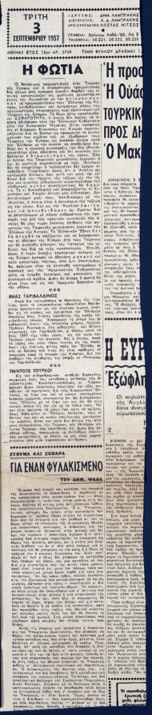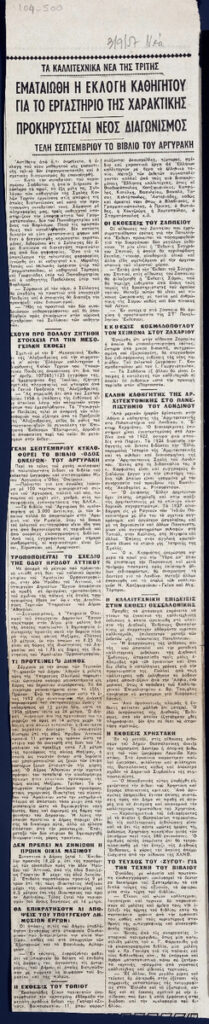 Απόκομμα της εφημερίδας “Τα Νέα” (03/09/1957), όπου δημοσιεύονται ειδήσεις από την καλλιτεχνική επικαιρότητα της εβδομάδας