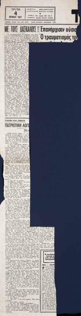 Απόκομμα της εφημερίδας “Τα Νέα” (04/06/1957), όπου δημοσιεύονται ειδήσεις από το καλλιτεχνικό ρεπορτάζ της εβδομάδας. Στο ίδιο απόκομμα: