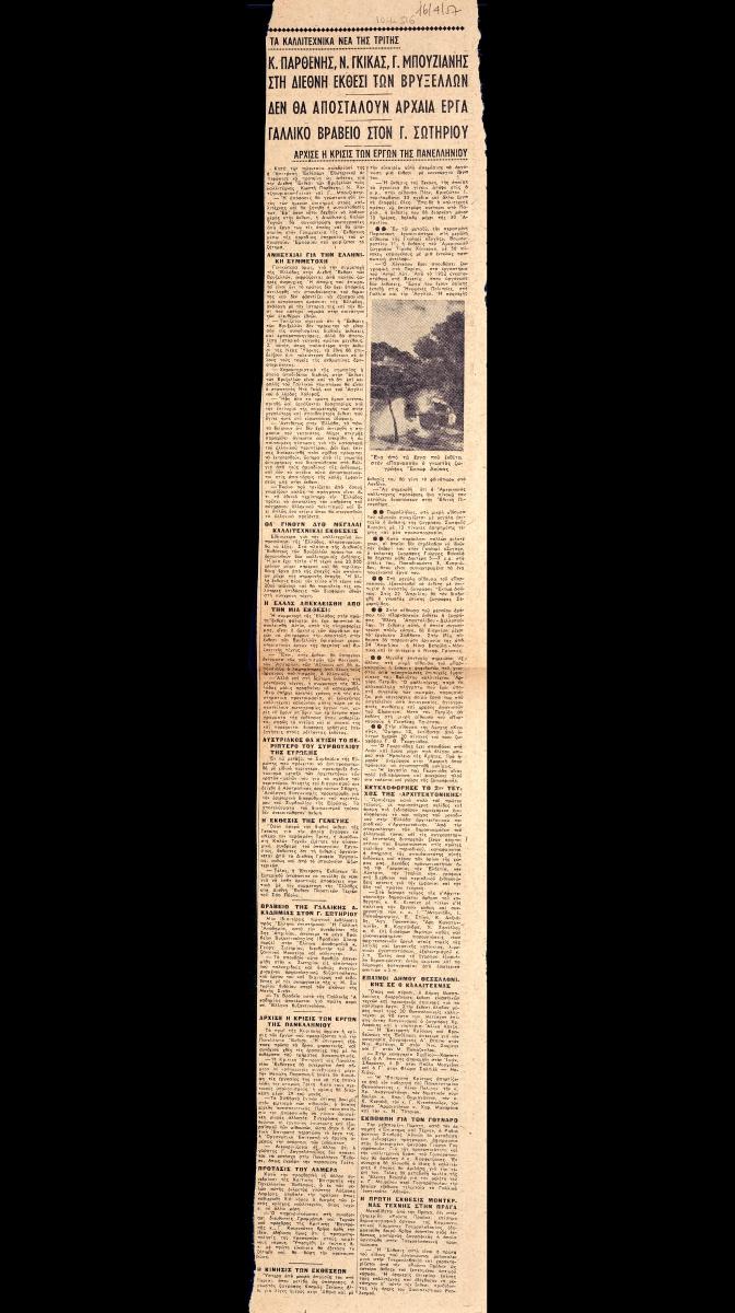 Απόκομμα της εφημερίδας “Τα Νέα” (09/04/1957). Στο ίδιο απόκομμα: “Διεθνής έκθεσις και στην Γενεύη, “613 οι υποψήφιοι της πανελληνίου”.