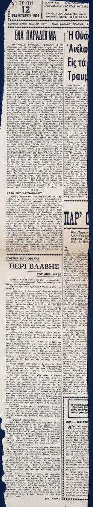 Απόκομμα της εφημερίδας “Τα Νέα” (12/02/1957). Στο ίδιο απόκομμα: “Ακαθόριστη ακόμη η ημερομηνία ενάρξεως της εκθέσεως στο Ζαππειον”.