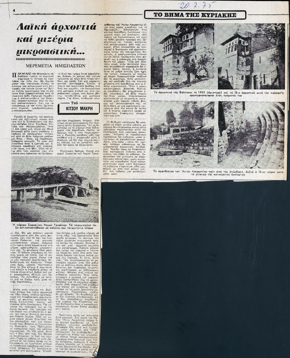 Απόκομμα της εφημερίδας “Το Βήμα της Κυριακής” (20/07/1975), όπου δημοσιεύεται άρθρο από τον λαογράφο Κ. Μακρή.