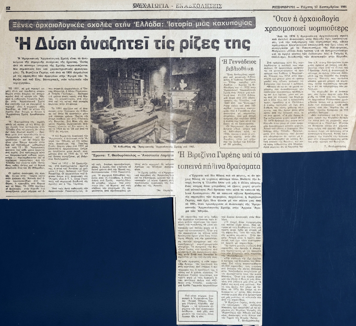 Απόκομμα της εφημερίδας “Η Μεσημβρινή” (17/09/1981), όπου δημοσιεύεται έρευνα των Τ. Θεοδωρακόπουλου και Α. Λαμπρία.