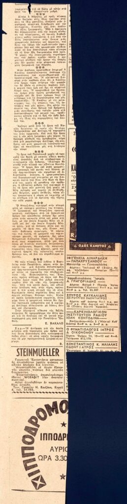 Απόκομμα της εφημερίδας “Τα Νέα” (26/04/1952).