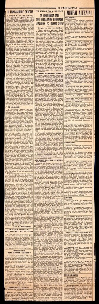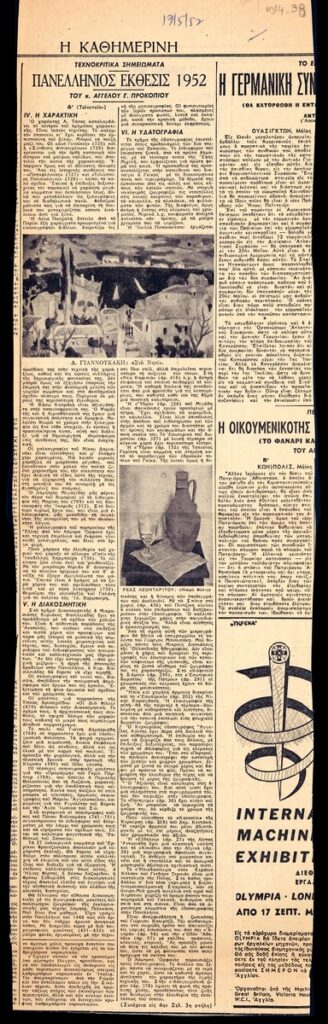Απόκομμα της εφημερίδας “Η Καθημερινή” (1952).