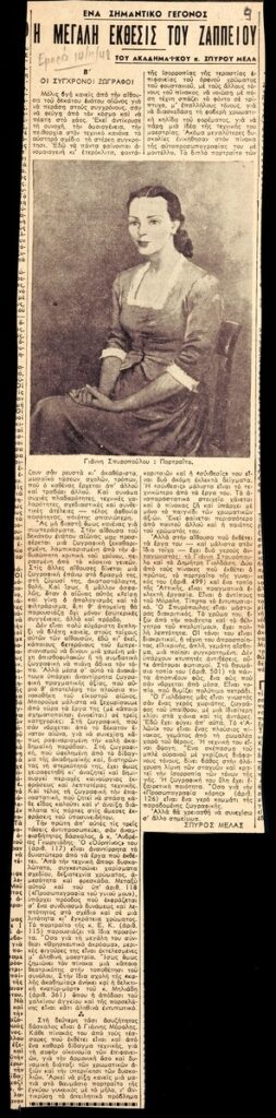 Απόκομμα της εφημερίδας “Εμπρός” (14/11/1948) όπου δημοσιεύεται άρθρο του Σπ. Μελά, αναφορικά με την Α΄ Πανελλήνιο καλλιτεχνική έκθεση του 1948, η οποία έλαβε χώρα στο Ζάππειο Μέγαρο, στην Αθήνα.