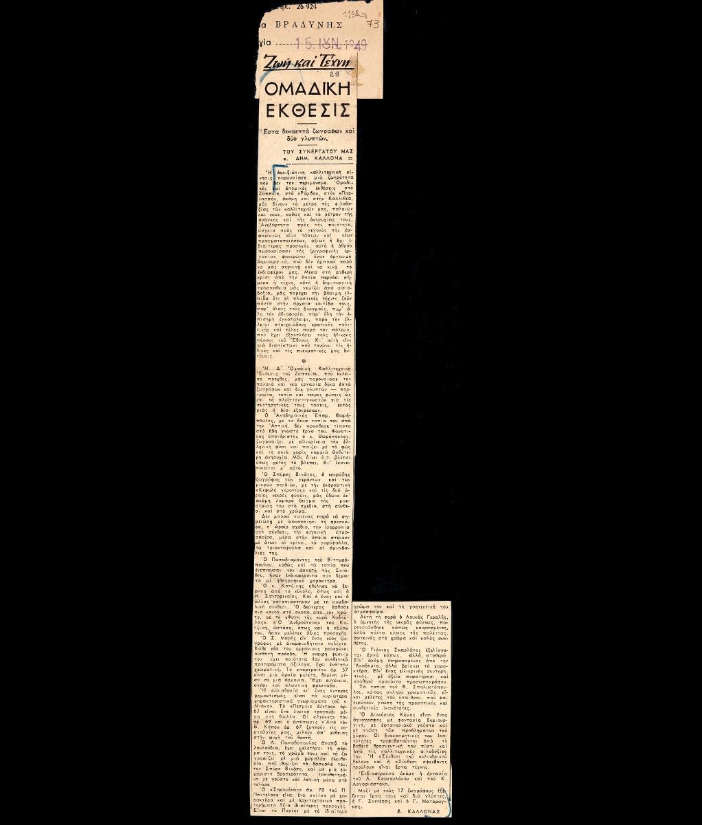 Απόκομμα της εφημερίδας “Η Βραδυνή” (15/06/1949).