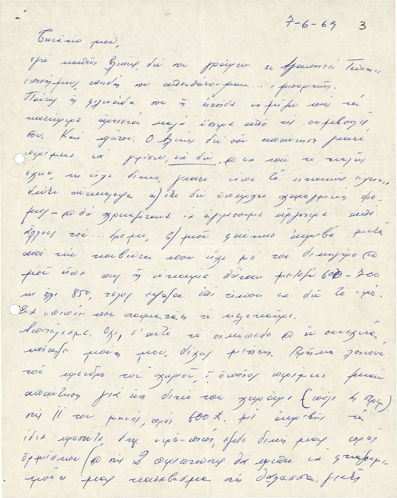 Επιστολή, χειρόγραφη, χαρτί, 2 φφ, 26.5×21 εκ., στα ελληνικά, απεσταλμένη από την Τατιάνα Γκρίτση-Μιλλιέξ, προς τον Τώνη Σπητέρη. Αναφέρεται σε αγοραπωλησία οικοπέδου.