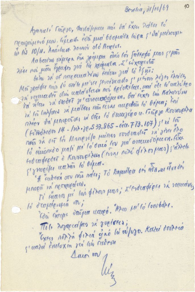Επιστολή του Τώνη Σπητέρη προς τον Γιώργο Ζογγολόπουλο