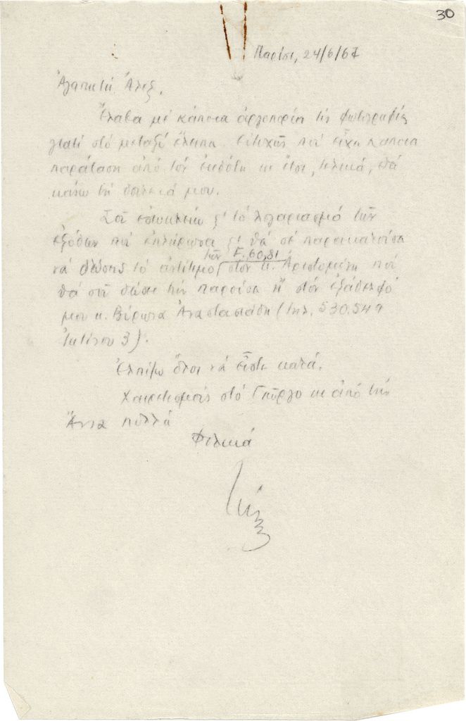 Επιστολή του Τώνη Σπητέρη προς την Άλεξ Μυλωνά