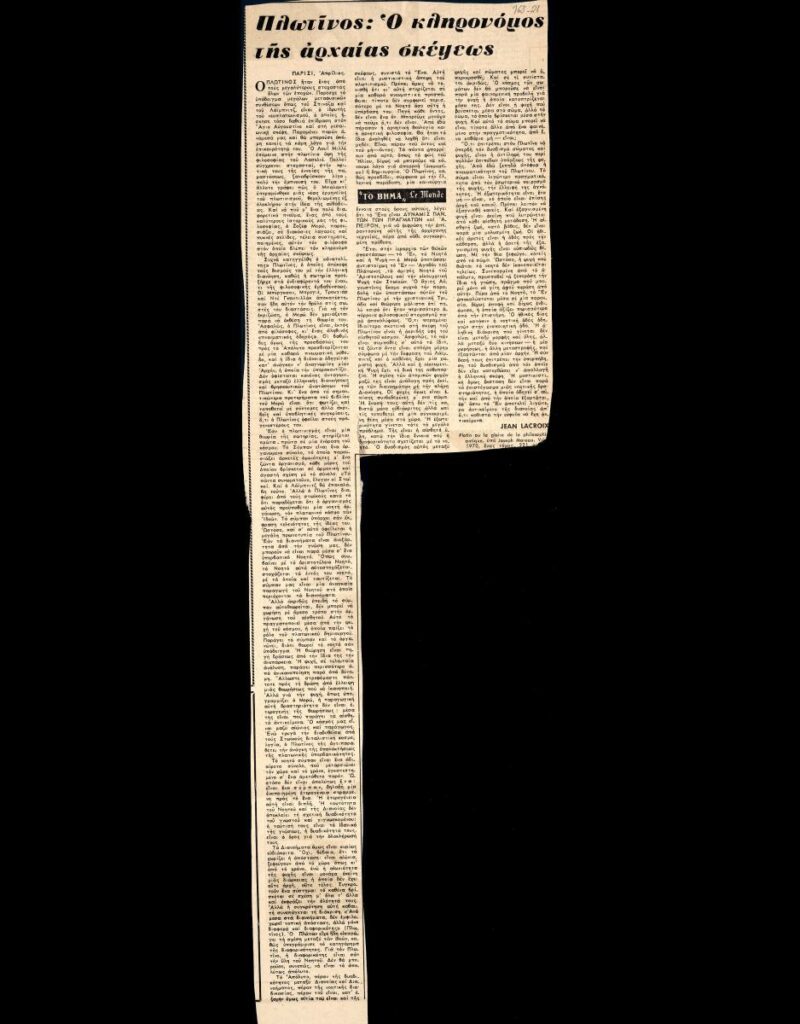 Απόκομμα της εφημερίδας “Το Βήμα” (1970).