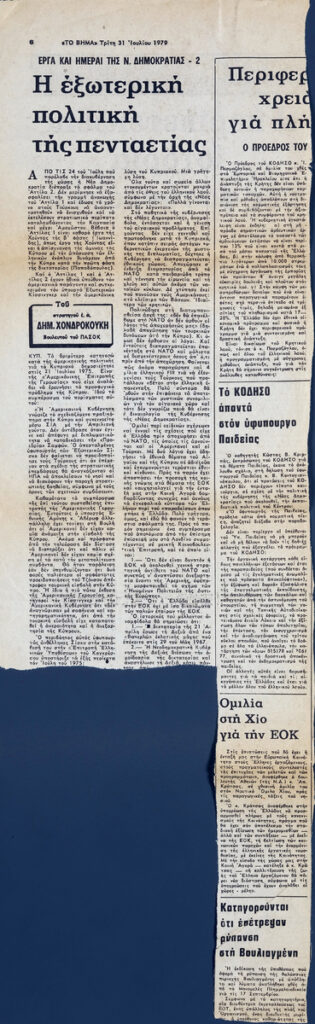Απόκομμα της εφημερίδας “Το Βήμα” (31/07/1979).