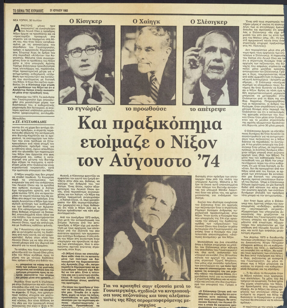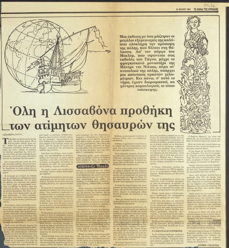 Απόκομμα της εφημερίδας “Το Βήμα της Κυριακής” (31/07/1983), όπου δημοσιεύεται άρθρο σχετικά με τους θησαυρούς της πορτογαλικής τέχνης.